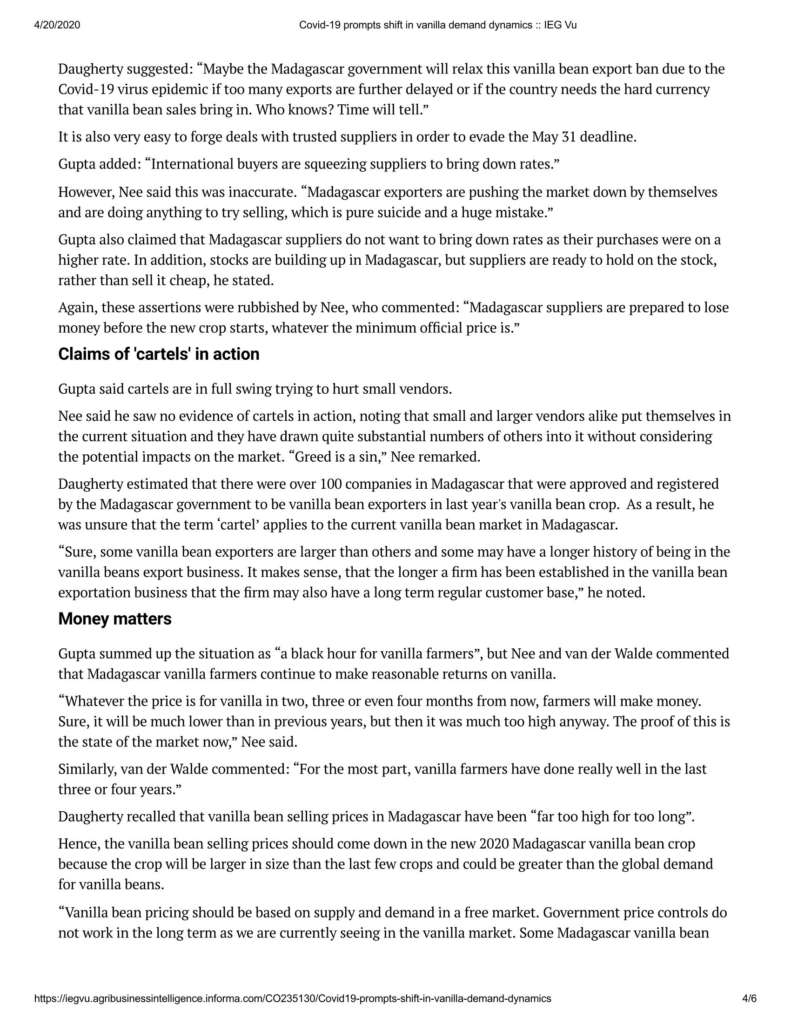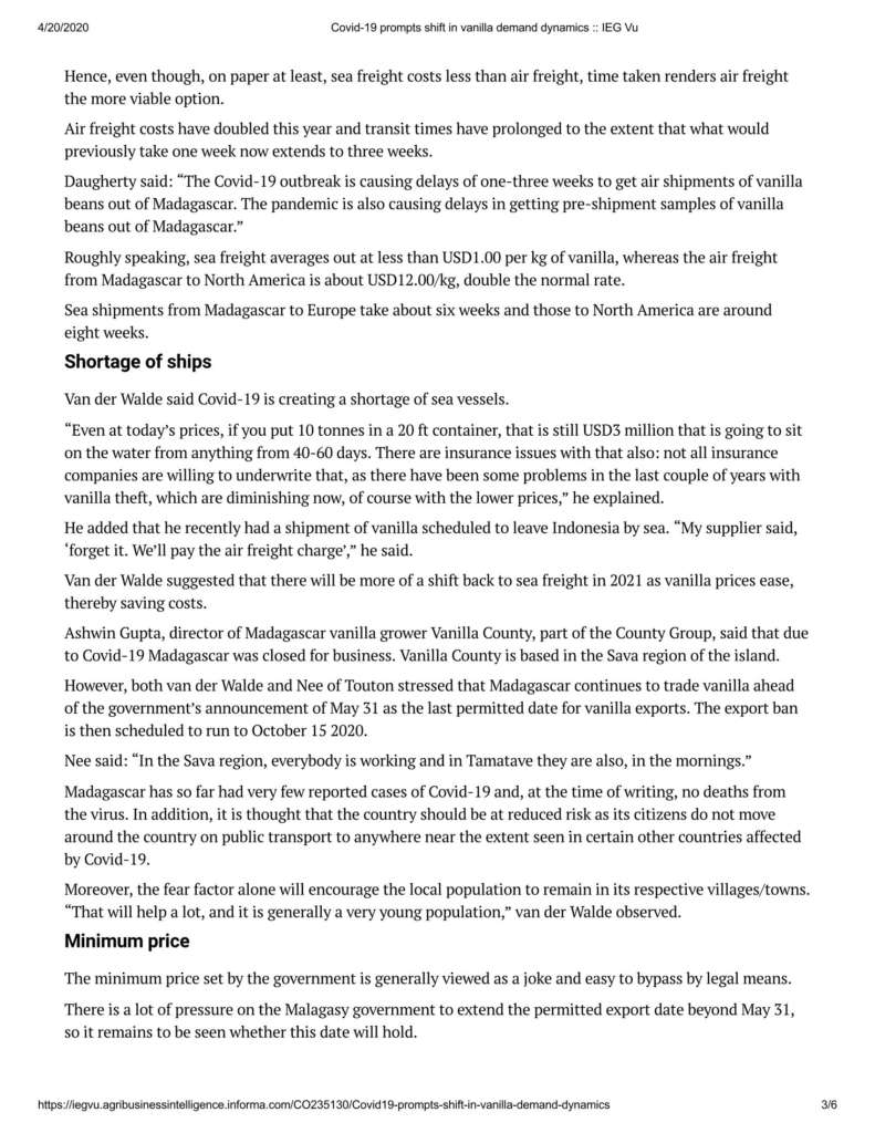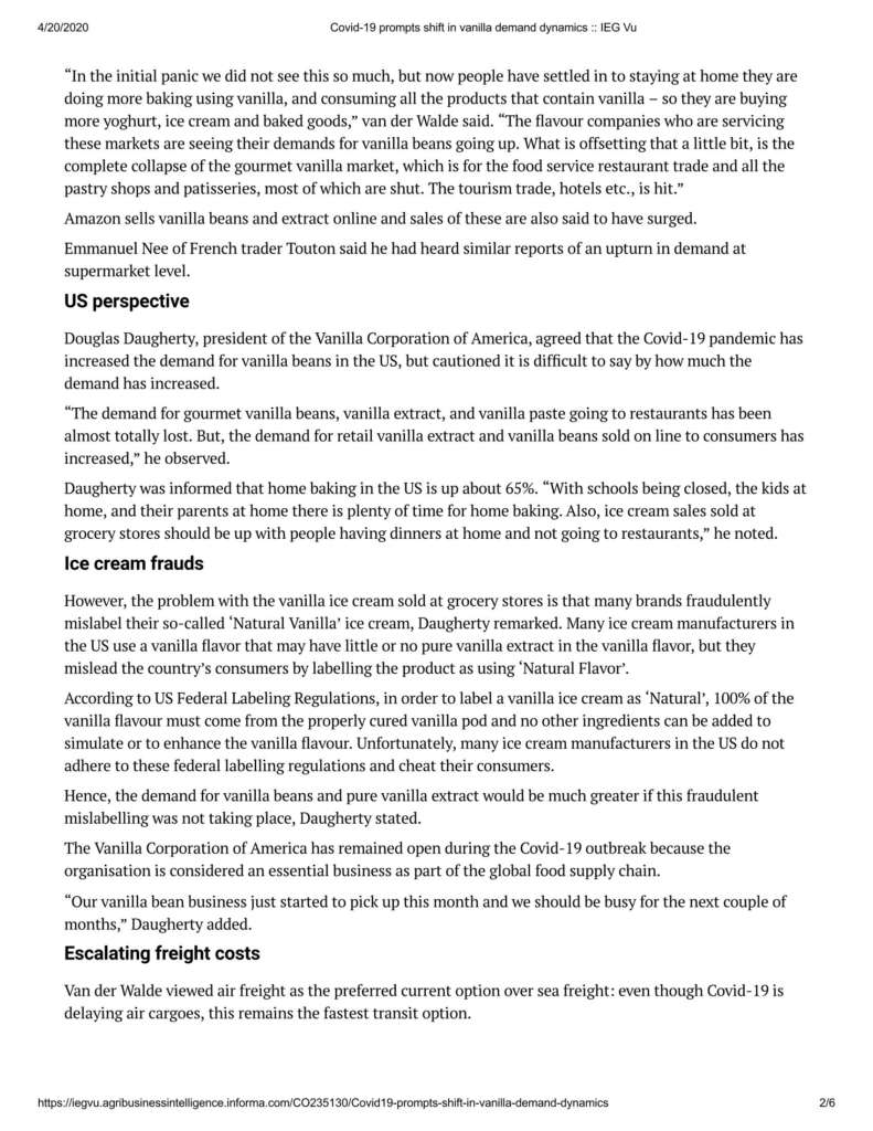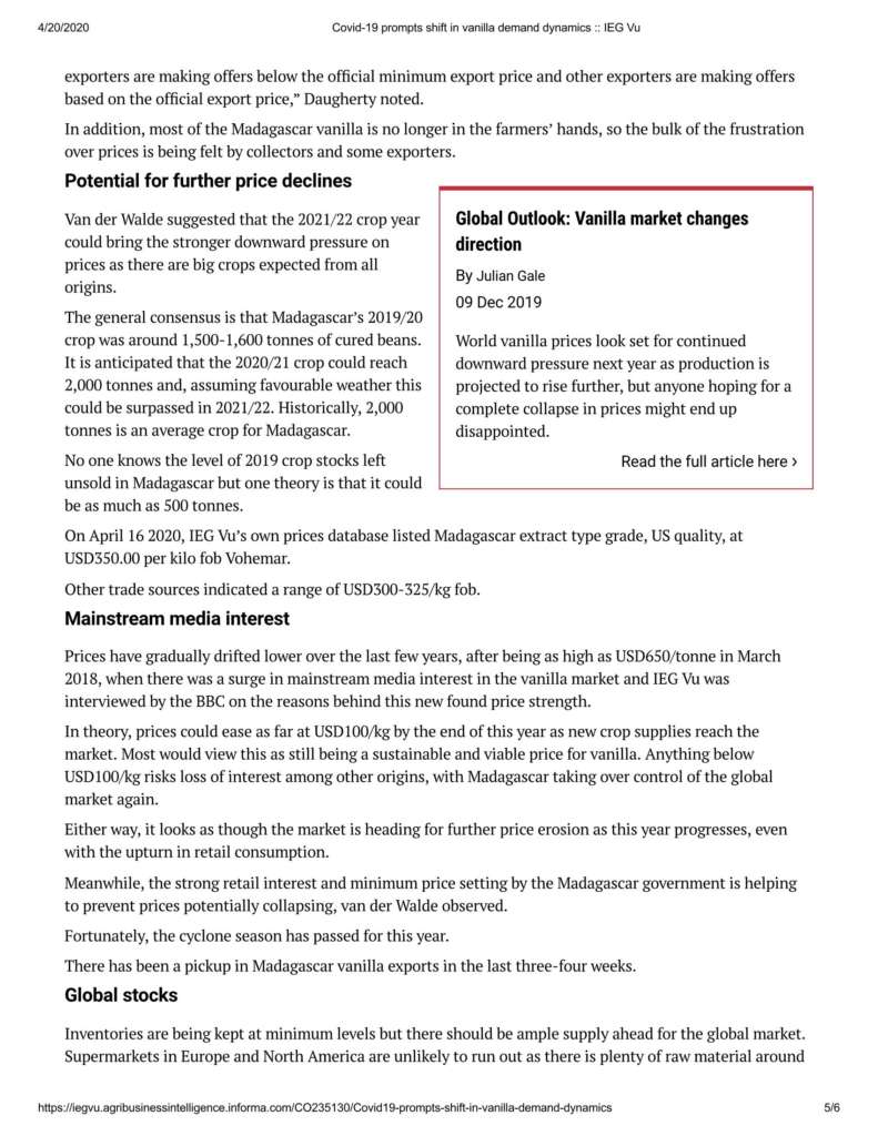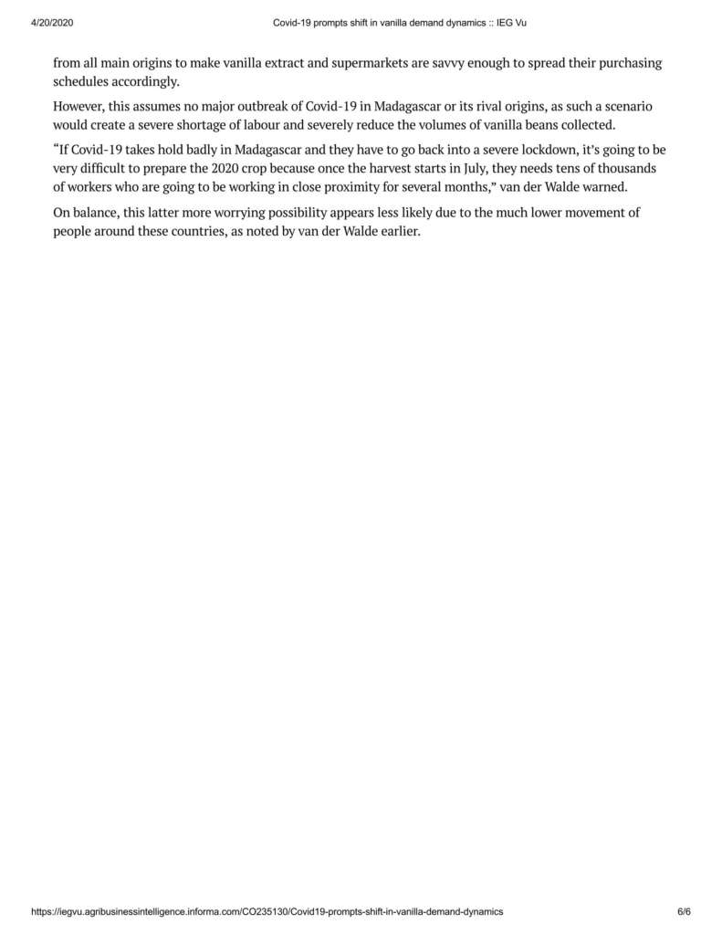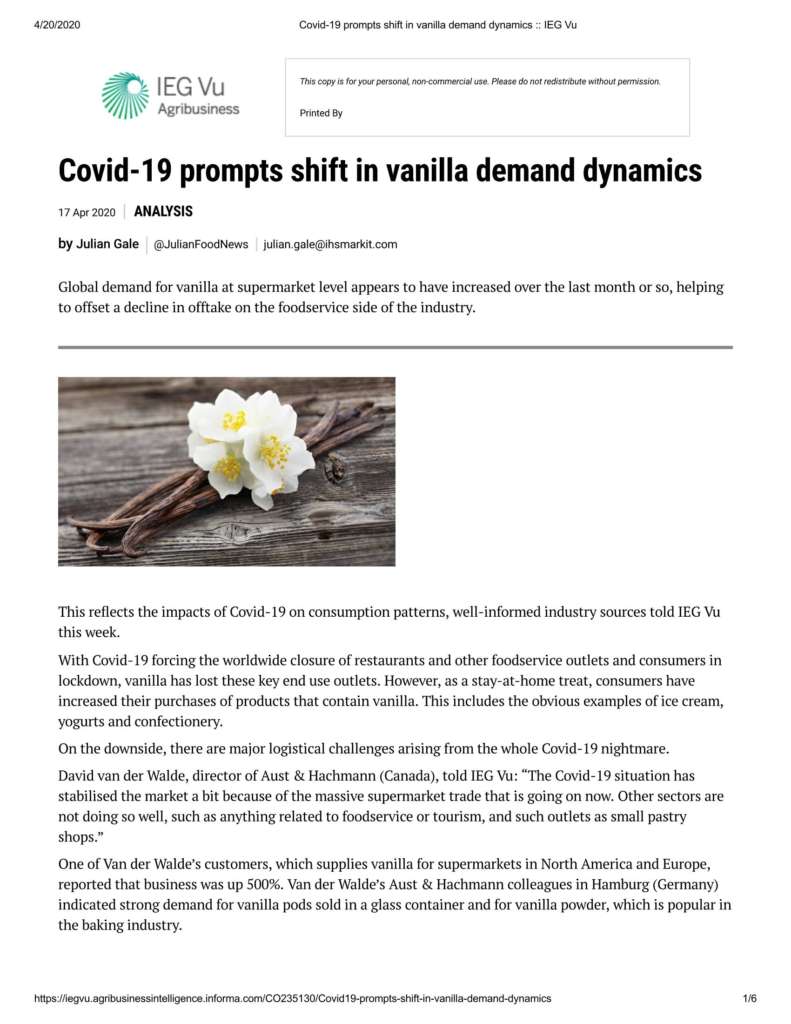 Impact de la crise du Covid-19 sur la demande mondiale de vanille